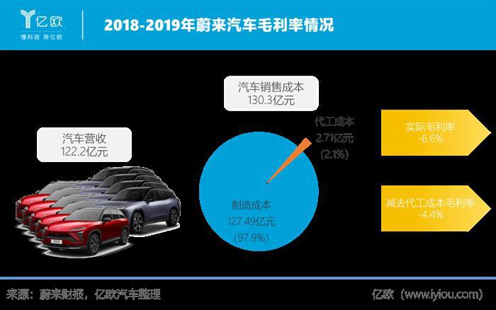 截至2019年12月31日,蔚来一共向江淮支付了2.71亿元人民币的代工费,且共售出车辆31913辆,即平均每辆车的代工成本为8500元,如果减去这个成本,蔚来2018-2019年间的汽车毛利率将由原本的-6.6%上升至-4.4%。