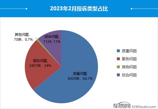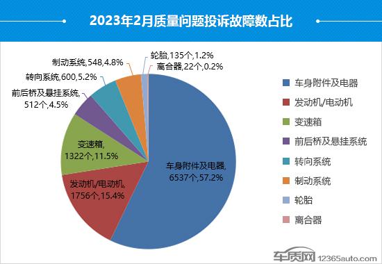 据国内领先的缺陷汽车产品信息收集平台车质网统计,2023年2月车质网共受理车主有效投诉信息10,026宗(其中含2宗针对第三方平台投诉,3宗后装轮胎投诉),创造了月投诉量历史同期最高纪录,环比上涨32.4%,同比上涨14.9%。