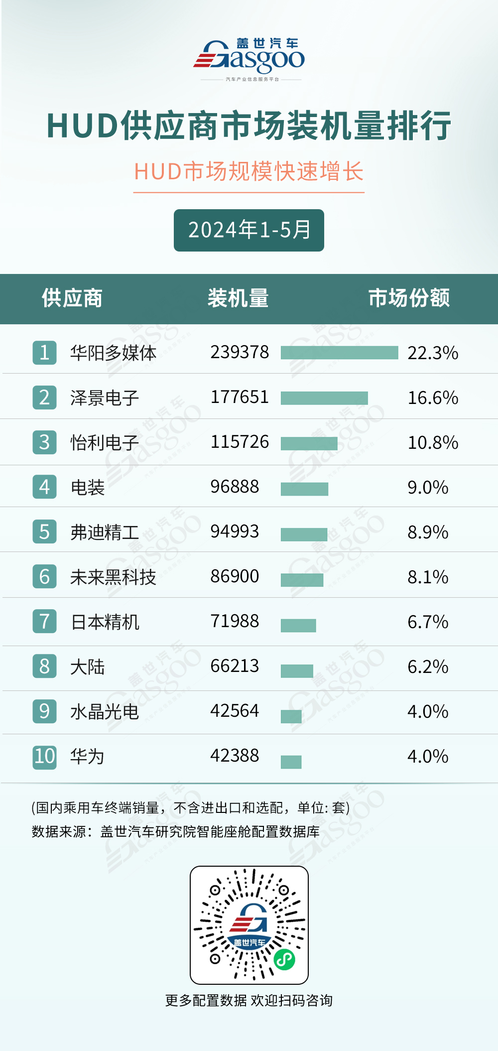 HUD供应商市场装机量排行榜:华阳多媒体持续领跑市场,整体市场规模快速增长