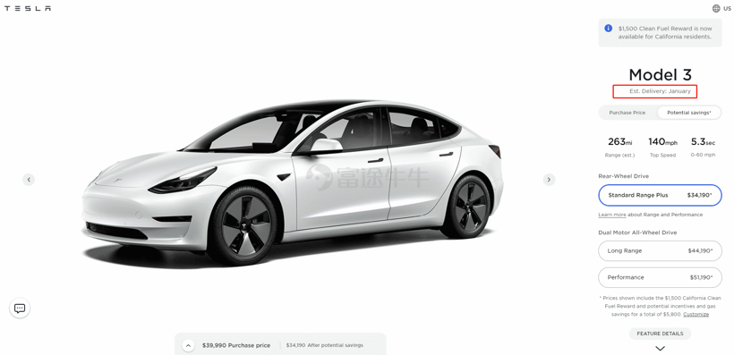 8月13日,据美国特斯官网的信息显示,特斯拉Model 3在美国市场已基本售罄,显示的订单交付时间已经推迟到了明年一月。