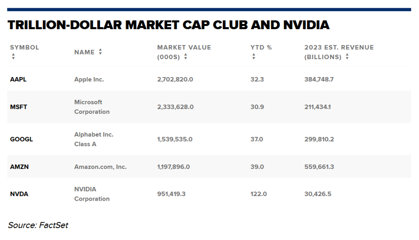 截至5月25日收盘,NVIDIA的股价自今年以来已经上涨了108%。NVIDIA令人震惊的销售额预期比分析师预期的71.5亿美元高出50%以上,几乎在一夜之间推高了其市值。