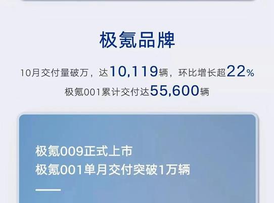 相较之下,一家“传统新势力”的“异军突起”,为造车新势力市场增添了看点。10月,吉利汽车旗下高端电动车品牌——极氪的月度交付量首次突破万辆大关,达10119辆,由此迈入品牌发展的新阶段。